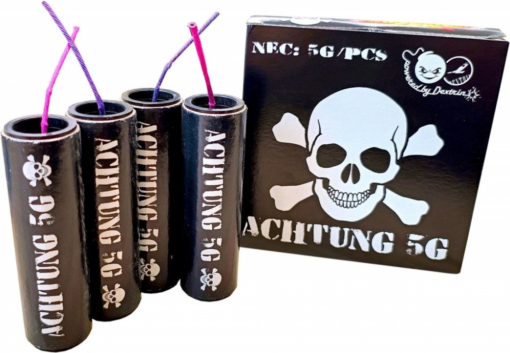 Parametryk produktu Pyrotechnika Petardy Achtung 5G 4ksEfektexplozeDélka petardy (mm)120Průměr petardy (mm)30Třída nebezpečíKategorie F3ADR zařazení1.3GNEC (g)20