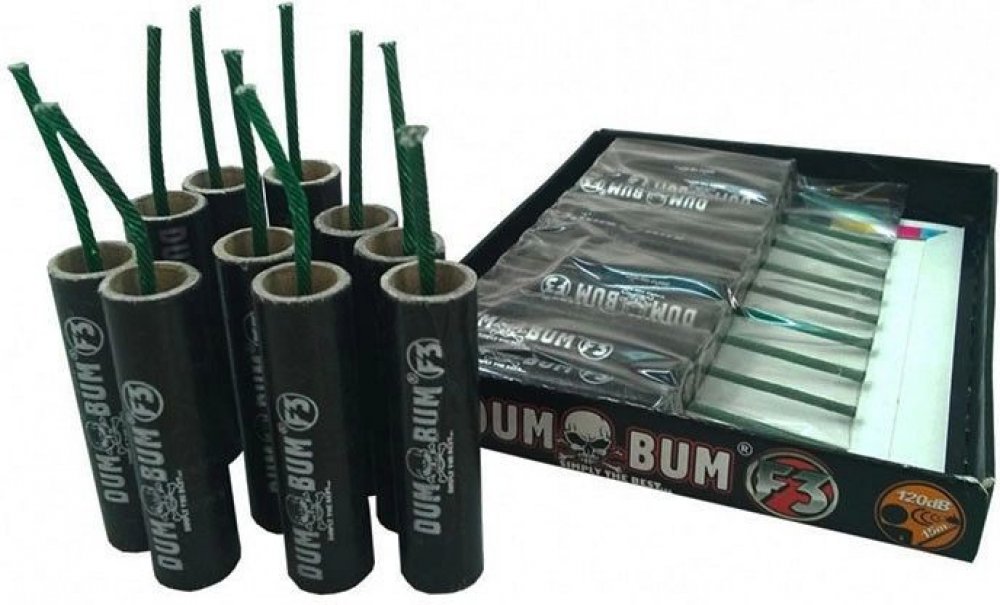 Petardy DUMBUM F3/P1 patří mezi kvalitní produkt a novinku roku 2024, díky novým normám byly tyto staré F3 petardy zařazeny do kategorie P1. Petardy DUMBUM F3 se řadí do 3. kategorie prodejné od 21 let. Zvukový efekt se pohybuje okolo 110 decibelů a výše, záleží na prostředí, ve kterém petardy odpalujete.
