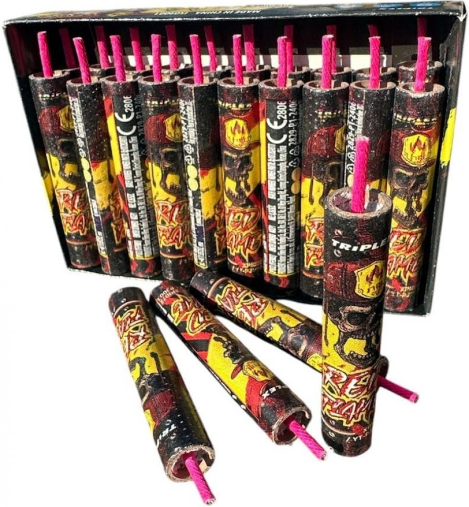 Pyrotechnika Petardy Red Flame 20ksPetarda se zapaluje zapálením knotku na petardě. Po 4 - 10 vteřinách se ozve exploze.Efekt: na začátku červené světlo + exploze (0,2g)Počet kusů v balení: 20Balení v kartonu: 80/20Třída nebezpečí: Kategorie P1ADR zařazení: 1.3GBezpečnostní pokyny: Položte jednotlivě na zem, zapalte konec zápalnice a vzdalte se do bezpečné vzdálenosti alespoň 15m. Diváci musí být nejméně 25m. Postupujte podle návodu na balení.