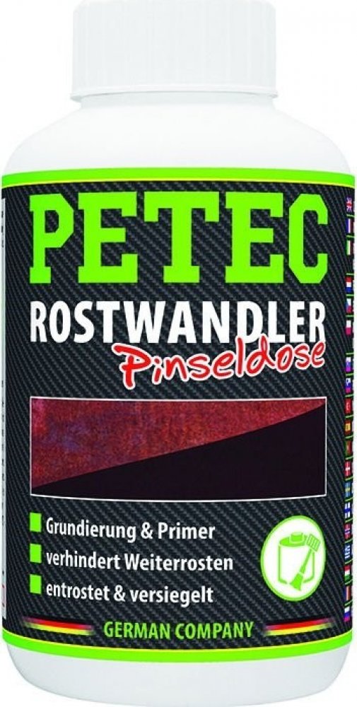 PETEC 70042 Kartáč na rez 250 ml: bojuje proti rzi a zabraňuje jejímu vznikuPETEC Rust Converter je účinný přípravek, který odstraňuje rez z kovových povrchů a zároveň chrání před budoucí korozí.Vlastnosti:Účinné odstranění rzi: Konvertor rzi proniká hluboko do rzi a rozpouští ji, takže ji lze snadno smýt.Dlouhodobá ochrana proti rzi: Konvertor rzi vytváří na kovovém povrchu ochrannou vrstvu, která chrání před budoucí korozí.Snadné použití: Konvertor rzi se snadno nanáší štětcem a nezanechává žádné zbytky.Univerzální použití: Konvertor rzi lze použít na všechny kovové povrchy, např. na automobily, motocykly, nářadí, stroje a zahradní techniku.Šetrný k životnímu prostředí: Konvertor rzi neobsahuje škodlivé složky, a proto je šetrný k životnímu prostředí.Použití: V případě potřeby je možné použít i jiné materiály, např:Odstraňte nečistoty a mastnotu z ošetřovaného povrchu.Naneste přípravek na povrch štětcem.Konvertor rzi nechte působit přibližně 10-15 minut.Rozpuštěnou rez smyjte houbou nebo kartáčem.Opláchněte povrch vodou.Technické údaje:Obsah: 250 mlBarva: transparentníZápach: mírnýTrvanlivost: 24 měsícůRozsah dodávky:1x PETEC Konvertor rzi s kartáčem 250 mlBezpečnostní pokyny:Uchovávejte mimo dosah dětí.Zabraňte kontaktu s očima.V případě zasažení očí okamžitě vypláchněte vodou a vyhledejte lékařskou pomoc.Nepožívejte.V případě požití okamžitě vyhledejte lékařskou pomoc. PETEC Konvertor rzi s kartáčem 250mlVýrobce: PETECČíslo výrobce: 70042Typ: Konvertor rzi / Konvertor rzi / Základní nátěr / Základní nátěrVytvrzování / konečná pevnost (mm za 24 hodin): 3Trvanlivost: 60 měsícůSkladovací teplota: +5°C až +35°CTeplotní odolnost: -40°C až +80°CMnožství náplně: 250 mlVlastnosti:Slouží jako základní a podkladový nátěrZastavuje postup rziÚčinně odstraňuje rez a těsněníVynikající kvalita přilnavostiKompatibilní se širokou škálou materiálůLze aplikovat i na vlhké povrchyEkologicky kompatibilní a netoxickýNení nutné smývatLze omítat polyesterovými a epoxidovými tmelyNeobsahuje silikonyOdolný vůči vodě, slané vodě a mírným kyselinám a zásadám po přelakováníOblasti použití:PETEC štětec proti rzi na vodní bázi nabízí účinné řešení proti rzi. Proniká do stávající rzi a neutralizuje ji, trvale uzavírá povrch a dokonale jej připravuje na opětovné natírání. Rozsah dodávky:součástí dodávky je: 1x PETEC kartáčový konvertor rzi 250 ml Technická data Hmotnost: 0,29 g Číslo položky: DVE4013558700427 EAN: 4013558700427 Proniká do stávající rzi, zastavuje její rozvoj, dlouhodobě uzavírá povrch a poté jej lze natřít.odstraňuje rezzabraňuje dalšímu rezivěnívysoká odolnost proti tečeníZákladní a podkladový nátěrvelmi dobrá přilnavostdlouhodobě těsní