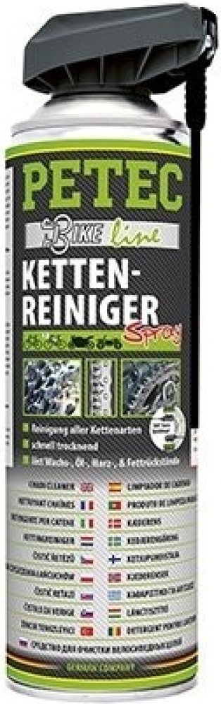 Účinný čisticí přípravek ve spreji pro čištění silně znečištěných řetězů ale i brzdových destiček, kotoučů atd. – Petec 70540 Univerzální čistič pro autoservis, dílnu, průmysl apod. Účinně odstraňuje i velmi odolnou špínu, neobsahuje aceton. Hlavní výhody: - intenzivní čisticí přípravek ve spreji odstraňuje z řetězů i odolné zbytky vosku, oleje, mastnoty, pryskyřic apod. jejich rozpuštěním - díky rychlému odpařování je v krátké době dosaženo optimálního čisticího účinku a je vytvořen dokonalý základ pro obnovení mazání - kompatibilní s mnoha materiály, jako jsou kovy, plasty, karbon, keramika, sklo a lakované povrchy - nekorozivní - bez acetonu - slouží také k rychlému čištění brzdových kotoučů, brzdových destiček a dalšího příslušenství - vysoká profesionální kvalita (vyrobeno v Německu)