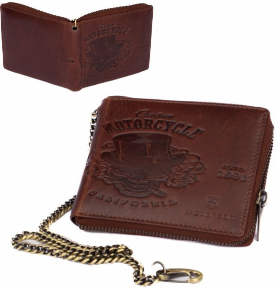 Peterson kožená pánská peněženka na zip s řetízkem hnědá