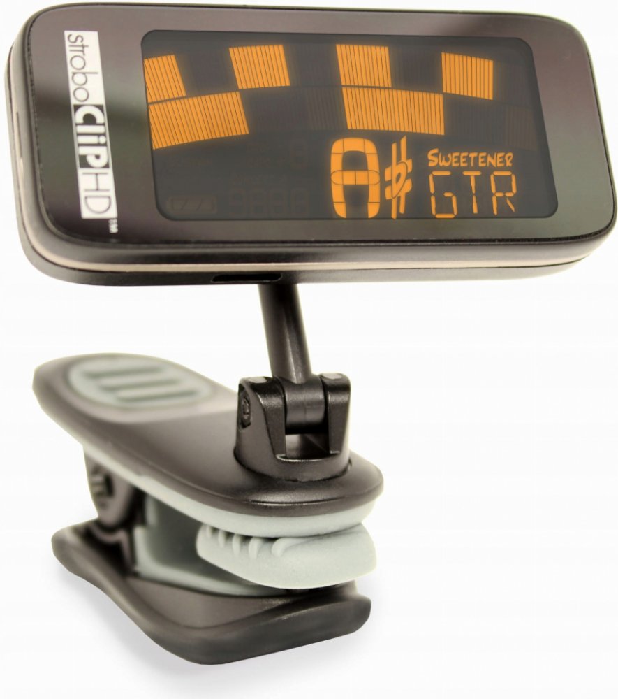 Mezi další schopnosti Strobo-Clip patří možnost nastavení komorního A od 400 po 490 Hertzů či ladění „drop“ nebo s kapodastrem. Pracovat dokáže s tóny C0 až C6. Důležité je, že kromě přesnosti nabízí i velkou rychlost detekce tónu a přehledný display. Ten se pro ušetření baterie sám po určité době vypíná, stejně jako po delší prodlevě i celá ladička.
