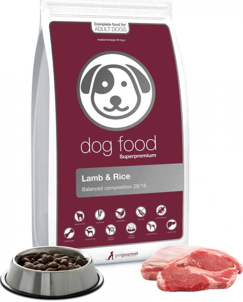 Kompletní krmivo pro dospělé psy středních a velkých plemen (od 10 kg) - jehněčí maso s rýží.