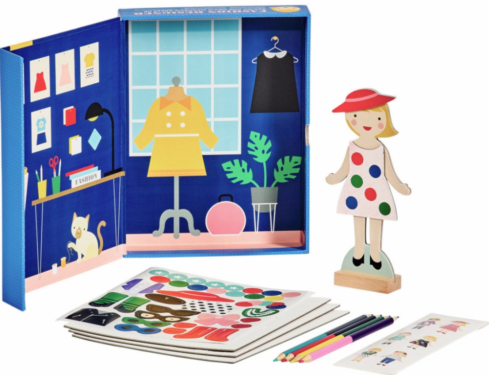 Tato zábavná hračka pro mladé designéry zabaví děti svou kreativitou. Budou vytvářet celkový outfit, včetně doplňků. Perfektní hračka pro mladé nadšence módy. Díky této hře mohou vytvořit více než 100 outfitů, budou mít tedy představivou zábavu na mnoho hodin. V balení najdete magnetickou figurku s dřevěným stojanem, 36 magnetických dílků oblečení, 4 oboustranné pastelky a 35 nálepek. Krabička má ...