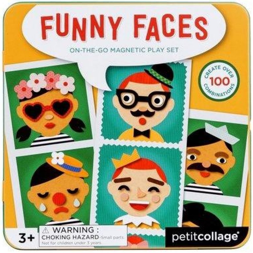 Promáčknutá nebo poškrábaná kovová krabička, která slouží jako magnetická tabulka. Jak vtipně mohou tyto tváře vypadat? Mixujte a skládejte povedené klobouky, praštěné brýle, tajemné kníry a vytvářejte tak tucty hravých obličejů! Připněte magenty dovnitř krabičky a vytvářejte vtipné obličeje! Balení obsahuje 2 pozadí a přes 25 magnetických dílků, s kterými si děti dokáží vyhrát. Zabaleno v plechové krabičce, která se dá pevně zavřít, perfektní hračka na cesty. Natisknuto netoxickými barvami. Splňuje všechny bezpečnostní normy. Hlavní vlastnosti: 25 dílků, 2 pozadípraktické balení