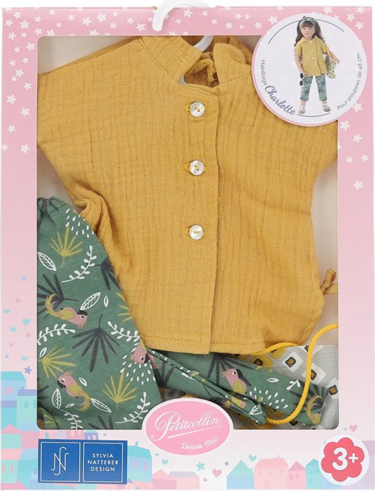 Petitcollin Obleček Alix (pro panenku 48 cm) Francouzská značka Petitcollin byla založena v roce 1860. Tolikrát se vrátila úspěšnými kolekcemi, že tak trochu zažívá věčné mládí. Zatímco mnoho dalších značek zmizelo, značka Petitcollin vybudovala bohaté zkušenosti jak vyrábět panenky stále tradičním způsobem. Výsledkem jsou krásné kolekce panenek, které děti milují i dnes. V posledních letech byla řada kompletně obnovena a přizpůsobena vkusu dnešních dětí a rodičů jak v Paříži, Sydney, Moskvě, New Yorku nebo dokonce Hong Kong. A uznání zákazníků je možná tou nejlepší odměnou.