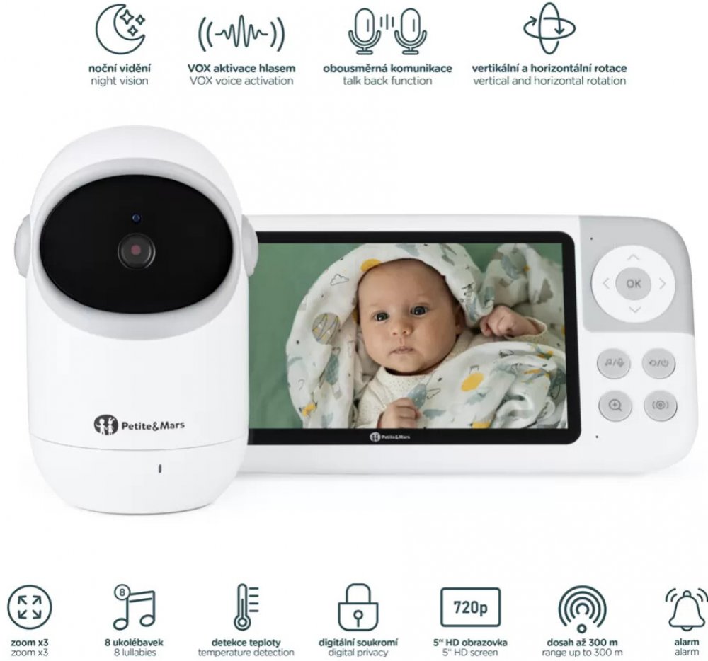 Funkce alarmu slouží jako časovač či připomínka – například na krmení, přebalení nebo kontrolu miminka. Navíc tato dětská chůvička nabízí mnoho funkcí, které usnadňují každodenní péči.
