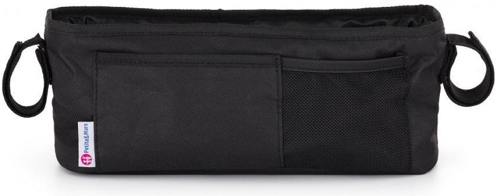 Praktický organizér s nastavitelnými popruhy na přichycení k rukojeti kočárku je vhodný pro většinu kočárků. Při procházce budete mít všechny důležité předměty po ruce.