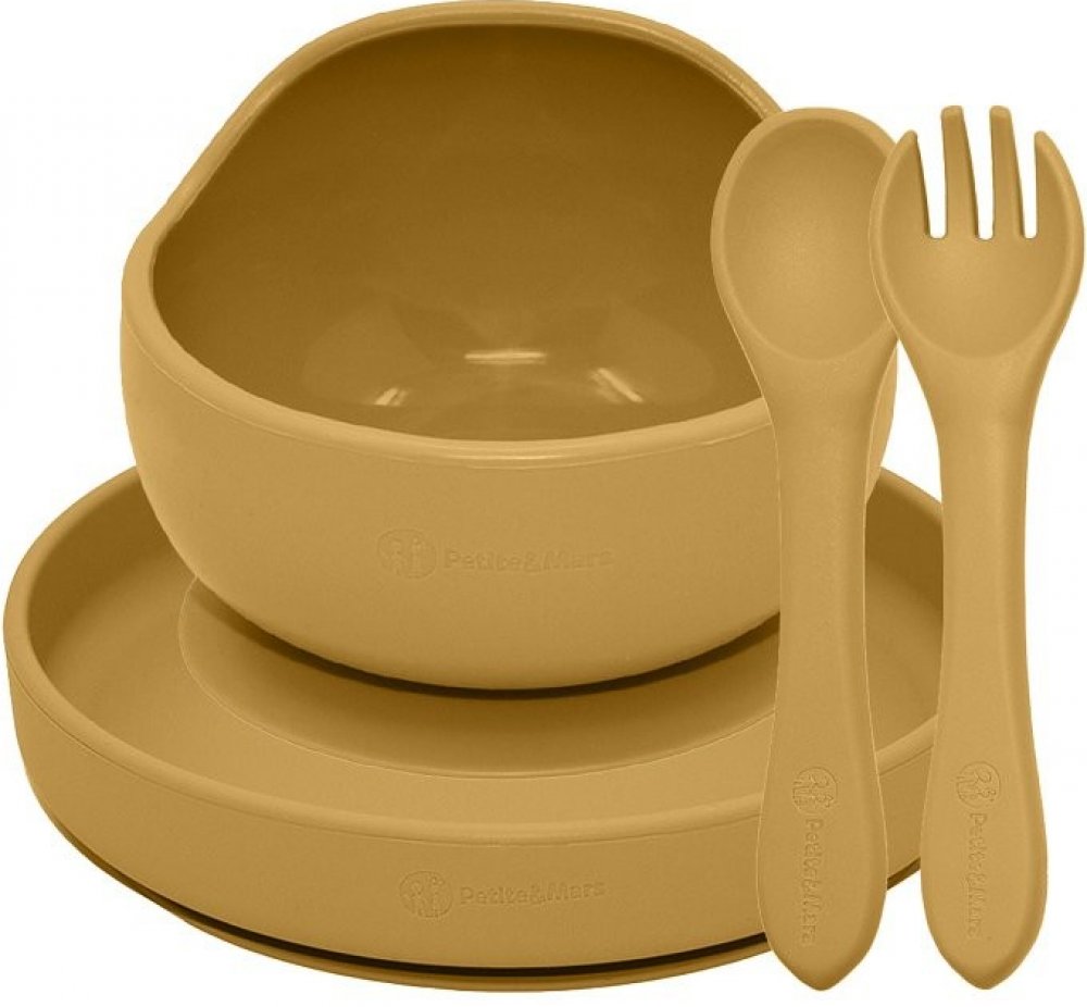 PETITE&MARS Set jídelní silikonový TAKE&MATCH Intense Ochre 6m+ 3 ks