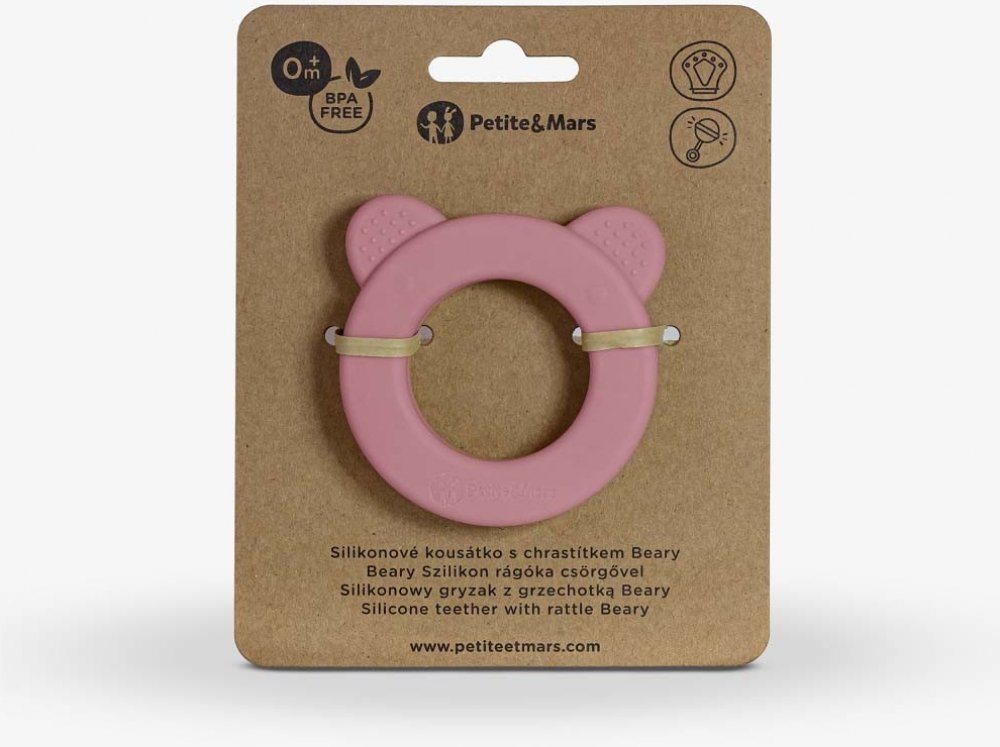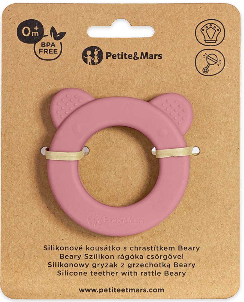 Petite&Mars silikon s chrastítkem Beary Dusty Rose