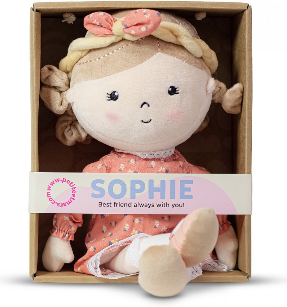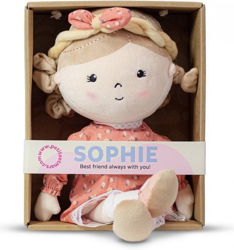 Sophie je milá, látková panenka, která se stane nerozlučnou přítelkyní každého malého děťátka. Ráda si hraje a baví se. Navíc se umí krásně tulit. Každý den je s ní zábava a je připravena na nová dobrodružství. V noci zase hlídá klidné sny a dodává děťátku pocit bezpečí. Usínání se Sophií je tak jednoduché. Její romantická duše se projevuje v obdivu ke květinkám, krajkám a věncům.
