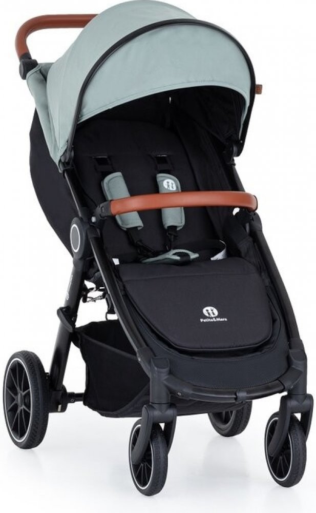 Agogs zelené Petite&Mars unisex sportovní gumová pro jedno dítě čtyřkolové terénní od 6 měsíců středně vybavené 11.98 kg 17 cm 25 cm 56 cm 2024 s jednoručním skládáním 25 kg s hliníkovým rámem s pětibodovým pásem po směru jízdy teleskopické s plně sklopitelným opěradlem