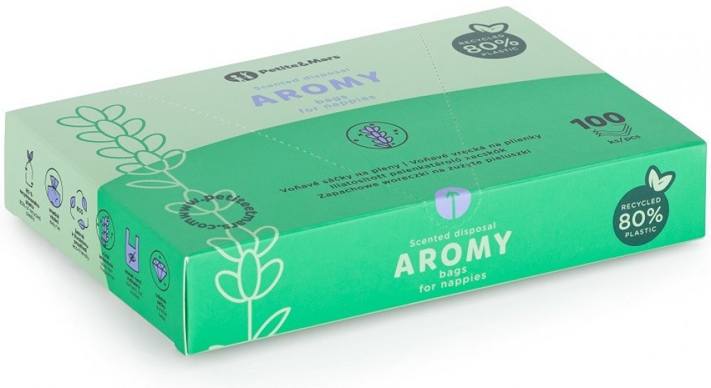 - Až 80 % materiálu použitého k výrobě sáčků AROMA pochází z recyklace. Výběrem sáčků AROMY se staráte nejen o hygienu a pohodlí, ale podporujete také ochranu životního prostředí.