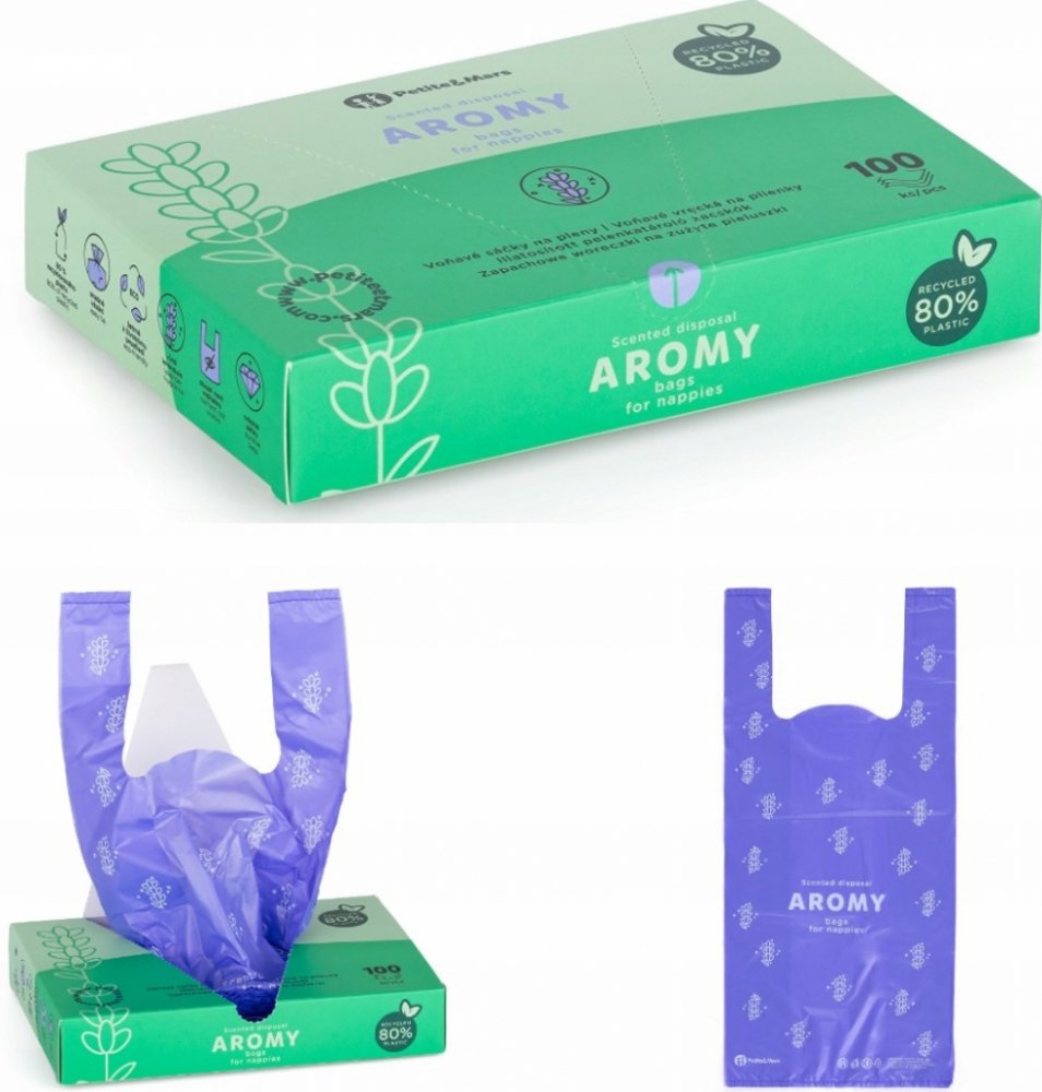 AROMY voňavé sáčky na použité plenky jsou nezbytným spojencem při každodenní péči o děťátko! Objemné kapsy s jemnou levandulovou vůní vám usnadní udržování čistoty a svěžesti.