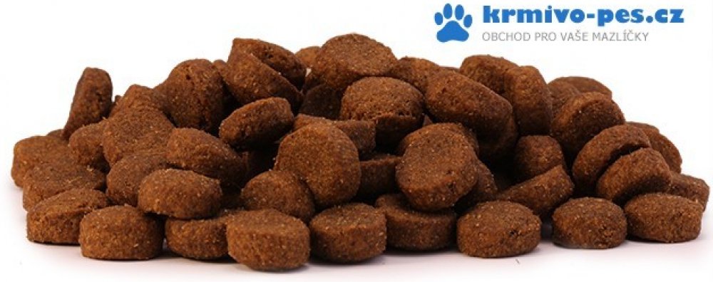ANALYTICKÉ SLOŽKY: Hrubý protein: 26 %, hrubé oleje a tuky 15 %, hrubý popel 7,5 %, hrubá vláknina 3,5 %, vlhkost 9 %, sacharidy 39 %, vápník 1,6 %, fosfor 1,3 %, omega-6 2,7 %, omega-3 0,6 %.