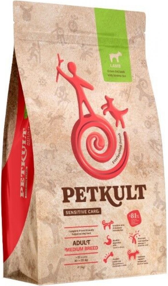 Petkult MEDIUM ADULT je krmivo s vysokým zdrojem energie a obsahuje 60 % dehydratovaného jehněčího a krůtího masa a jednoduchých surovin s vysokou stravitelnost, které zabraňují vzniku alergií.