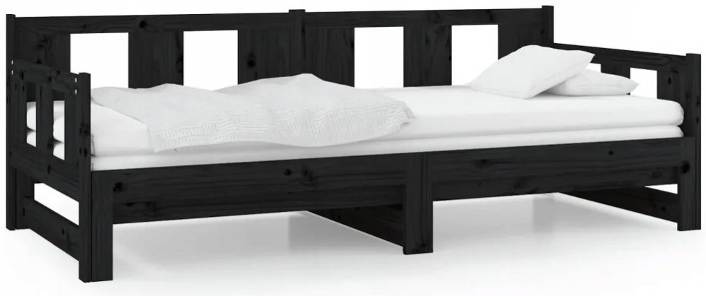 Tato víceúčelová válenda, která vám přes den poslouží jako pohovka, je také skvělou volbou pro uložení hostů, protože ji lze na noc přeměnit na postel. Ať už tuto praktickou pohovku postavíte kamkoli, zaručeně zaujme na první pohled! Masivní borové dřevo: Masivní borové dřevo je krásný přírodní materiál. Borové dřevo má rovnou kresbu a obsahuje suky, které materiálu dodávají jeho charakteristický, rustikální vzhled.Rozkládací design: Dřevěná válenda funguje také jako výsuvná postel, lze ji tedy snadno přeměňovat ve dne na pohovku a v noci na pohodlnou postel.Prostorově úsporná funkce: Válenda z masivního dřeva maximalizuje využití dostupné podlahové plochy, a přitom poskytuje místo na spaní pro dva lidi. Jedná se proto o skvělou volbu pro ty, kdo mají k dispozici omezený prostor. Poznámka:Balení obsahuje pouze rám válendy. Matrace není součástí balení. V našem obchodě najdete rovněž vhodné matrace.Barva: černáMateriál: masivní borové dřevoCelkové rozměry (po rozložení): 203,5 x 160 x 69,5 cm (D x Š x V)Celkové rozměry (při složení): 203,5 x 86 x 69,5 cm (D x Š x V)Výška spací plochy od země: 30 cmVhodné rozměry matrace: 80 x 200 cm (Š x D) (matrace není součástí balení)Zapotřebí jsou 2 matraceMontáž nutná: ano