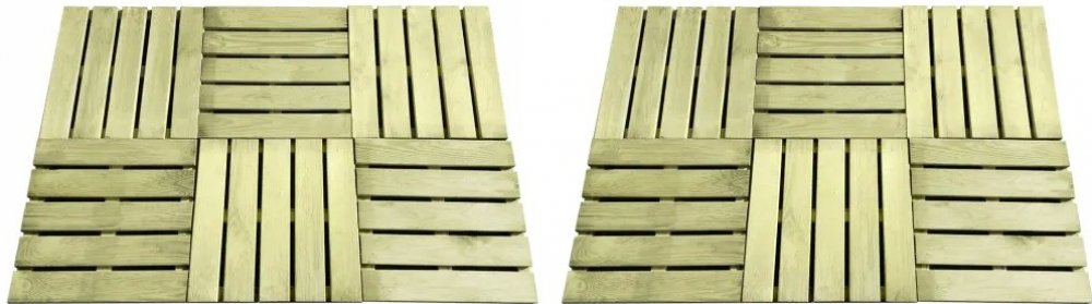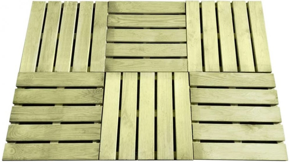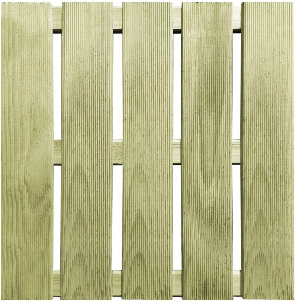 Položte na své zahradě, terase nebo u bazénu nádhernou dřevěnou podlahu s naší sadou 12 terasových dlaždic. Terasové dlaždice jsou vyrobené z impregnovaného borového dřeva. Jedná se o velmi odolné dřevo, které nepodléhá hnilobě ani vlivům počasí. Překrásná kresba dřeva propůjčuje dlaždicím rustikální kouzlo a jedinečný, neopakovatelný vzhled. Balení obsahuje 12 terasových dlaždic. Poznámka: Dřevo je přírodní produkt, a může tak vykazovat jisté nedokonalosti.Materiál: zeleně impregnované borové dřevoRozměry (jednotlivých dlaždic): 50 x 50 x 3,2 cm (D x Š x T)Šetrné k životnímu prostředíOdolné vůči klimatickým vlivům a hniloběČástečně smontovánoBalení obsahuje 12 terasových dlaždic