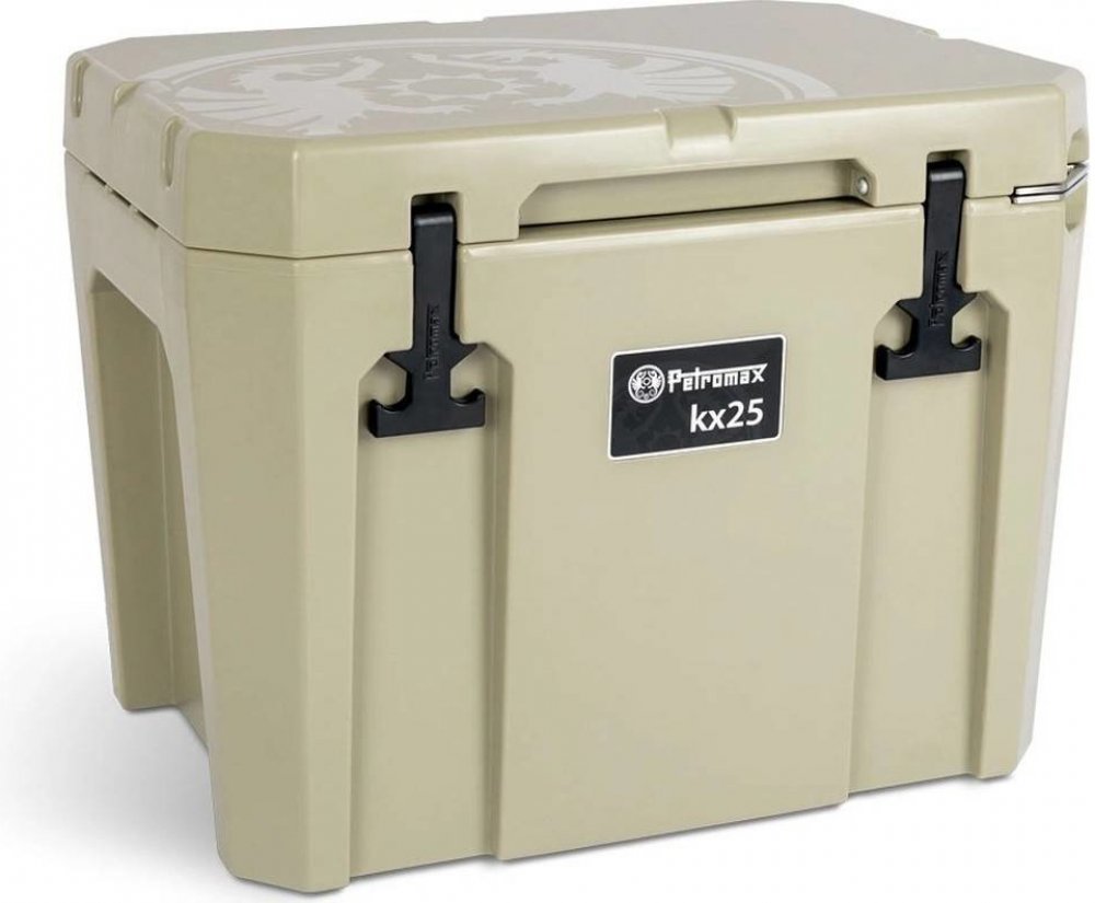 Robustní chladicí boxy od společnosti Petromax jsou navrženy jako nezávislé ultra pasivní chladicí systémy určené zejména pro venkovní použití. Dvouplášťové tělo z polyethylenu a silná polyuretanová izolace zajistí chlazení ledem až po dobu 12 dní – bez elektřiny nebo generátoru. Chladicí boxy jsou provozovány výhradně s běžně dostupnými kostkami ledu, chladicími vložkami nebo suchým ledem*. Vodu z rozpuštěného ledu lze kdykoli vypustit pomocí integrovaného odtokového systému. Díky extrémně odolné konstrukci je možné je použít také jako stabilní sedadlo nebo stojan. Vedení na popruhy umožňují bezpečné připoutání k úložné ploše nebo ke člunu a protiskluzové gumové nožky a uzávěry nabízí praktické využití. Díky zesíleným uzamykacím destičkám v pravém horním rohu boxu lze modely řady kx zajistit visacím zámkem. Chladicí boxy jsou k dispozici ve třech přírodních barvách.