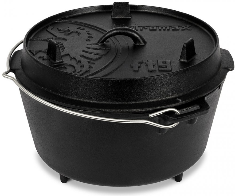 Pro vaření a přípravu jídel na přímém ohni je litinovýkotlík "Dutch Oven" ideální. Robustní kotlík je v nabídceve dvou provedeních; s nožkami nebo bez.Vybírat pak můžete ze sedmi velikostí. Litinový kotlíkmá při vaření na ohni všestranné využití:• Poklici lze použít také jako pánev (kromě ft1)• Hrnce se dají na sebe skládat• Otvor pro teploměr• Rukojeť se zářezem pro bezpečné zavěšení