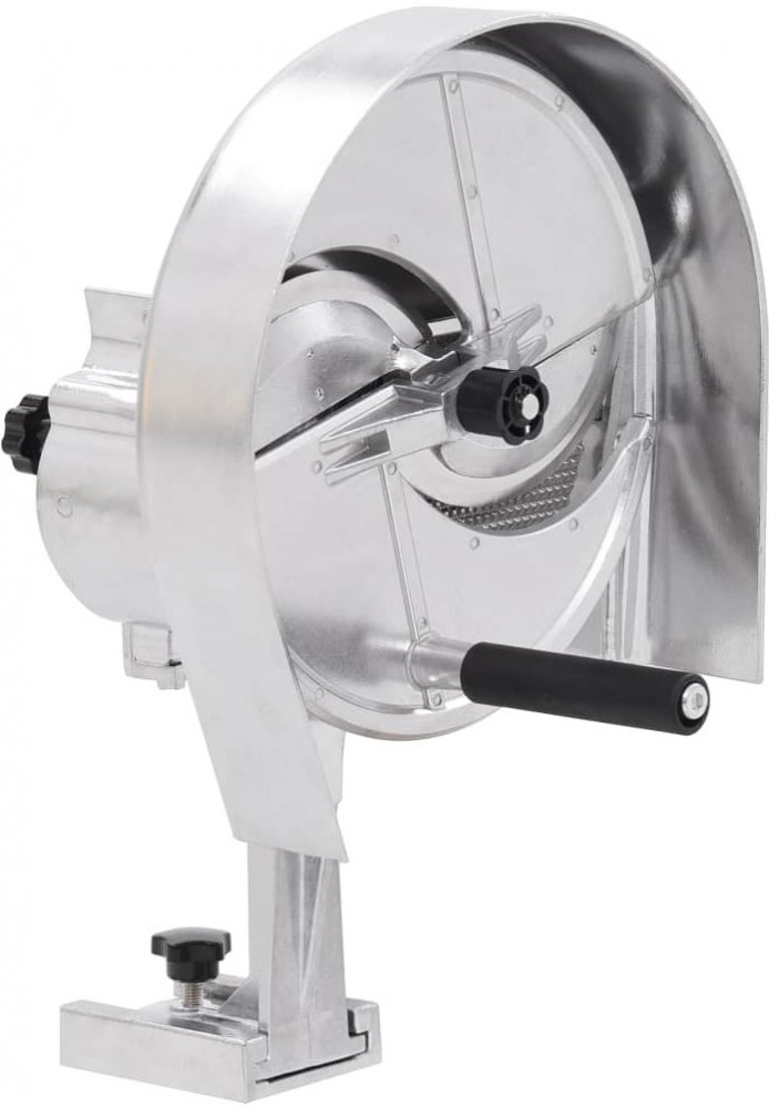 S tímto uživatelsky přívětivým kráječem zeleniny můžete bez námahy ručně krájet různé druhy zeleniny. Je ideální pro každodenní i profesionální použití, ať už v domácnostech, hotelech, restauracích, školách apod.Kráječ zeleniny s jednoduchou a robustní hliníkovou konstrukcí má ostré čepele z nerezové oceli, které zajišťují vysokou účinnost a odolnost. Tloušťka řezu je nastavitelná od 0,3 mm do 8 m...
