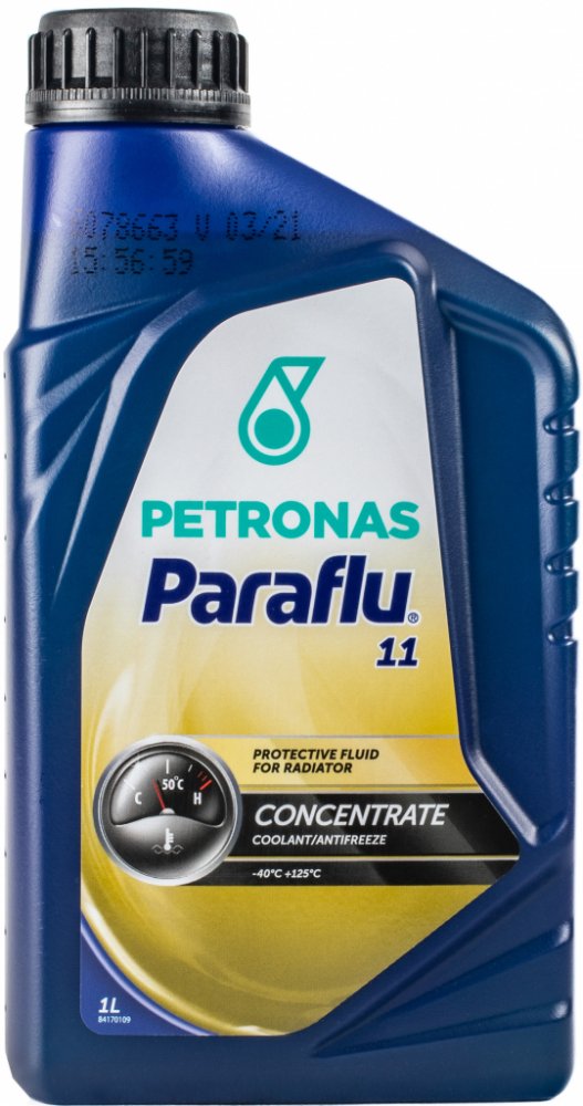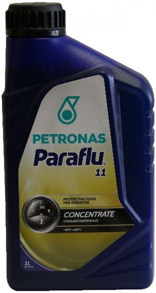 - Koncentrovaná ochranná kapalina do chladičů k profesionálnímu použití, jejíž základní složkou je ethylenglykol. Je výsledkem nejnovějších výzkumů Petronas Lubrikants, odpovídá zcela všem požadavkům na ni kladeným, a to i v těch nejnáročnějších podmínkách. Paraflu 11 v 50% směsi s vodou zaručuje: optimální odvod tepla ze spalovací komory motoru. Maximální ochranu proti mrazu, působení mrazu (při teplotě vnějšího prostředí až do -40°C) tvorbě vápence. Přehřátí v teplých obdobích, v městském provozu(při teplotě okruhu až do +110°C). Chrání před korozí všech kovových materiálů, které tvoří chladící okruh (litina, hliník, měď). Chrání umělohmotné a gumové části okruhu.
