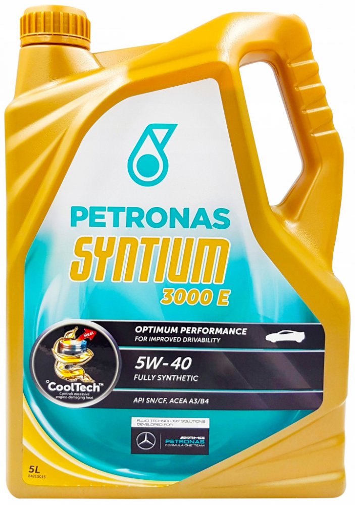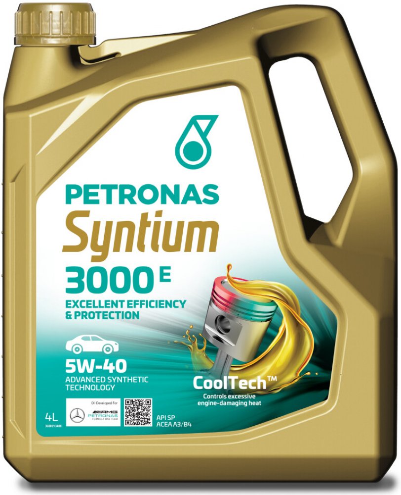 Petronas Syntium 3000 E 5W-40 je špičkový motorový olej, vhodný pro všechny typy osobních vozidel, především pro nejvýkonnější modely značek Mercedes-Benz a BMW s benzinovými motory a vznětovými motory vybavenými částicovými filtry, nejnovějšími velmi výkonnými automobily se vstřikováním paliva, vícero ventily na válec, motory s turbodmychadlem či kompresorem, provozované za nejdrastičtějších podmínek.