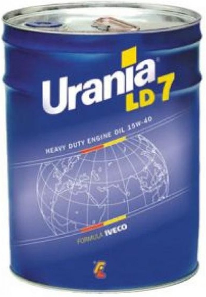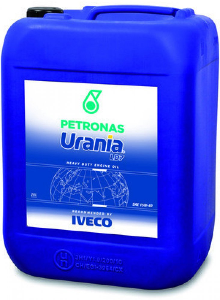 Minerální motorový olej. U průmyslových vozidel s turbodmychadly všech typů a výkonu. Je také ideální pro průmyslová vozidla s aspirovanými motory a užitkovými vozidly. Urania Turbo LD byla vytvořena a vyvinutá firmou FL s použitím nejrozsáhlejších zkušeností s motorem, které jsou dnes k dispozici, aby vyhověly požadavkům Iveco pro motory nové generace. Kromě toho může zaručit snížení spotřeby oleje až o 30%. Maximální ochrana proti opotřebení způsobenému trvalým výkonem motoru v podmínkách s vysokým zatížením. Maximální ochrana proti usazeninám (lak, kal a jiné znečišťující látky) způsobené vysokými provozními teplotami. Jednoduchý studený start, vysoký a konstantní tlak v mazacím okruhu při všech pracovních a klimatických teplotách. Jelikož překračuje požadavky na jakost všech evropských výrobců průmyslových vozidel, lze olej Petronas Urania LD7 použít pro turbomotorové nebo aspirované vznětové motory všech typů, značek a výkonu. Doporučené intervaly výměny oleje dle výrobce: až 20 000km u vozidel pracujících v těžkých podmínkách až 50 000km a více u vozidel v silniční/dálkové dopravě. Je vhodný pro motory Euro III, Euro IV a Euro V a splňuje požadavky motorů s technologií SCR i EGR.