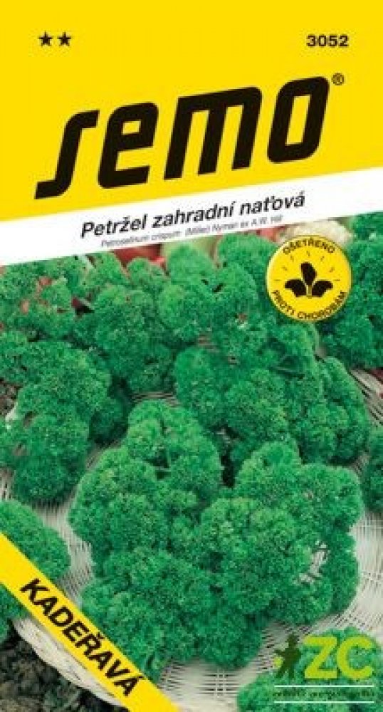 KADEŘAVÁ – bujně rostoucí odrůda naťové petržele. Dává vysoké výnosy svěží, aromatické natě. Po seříznutí velmi rychle obrůstá. Má bohatě dělený, jemně zkadeřený list, zpočátku vzpřímený, ale záhy se rozkládající do stran. Mladý list je svítivě zelený, lesklý, později tmavne a ztrácí lesk. Řapík krátký a pevný. Vůči chorobám je odolná a dobře odolává suchu. Sejeme co nejdříve na jaře – v březnu až dubnu, opakovaně v srpnu. Lze vysévat i těsně před příchodem mrazů v říjnu až listopadu. Vegetační doba je z jarních výsevů 90 dnů, z podzimních 180 dnů. Sklizně z jarních výsevů probíhají od června do listopadu, z podzimních výsevů začínáme sklízet již od května. Při jednorázové sklizni lze počítat se 4 – 5 sklizněmi a s celkovým objemem sklizně zelené hmoty ze 100 m2 130 – 150 kg.