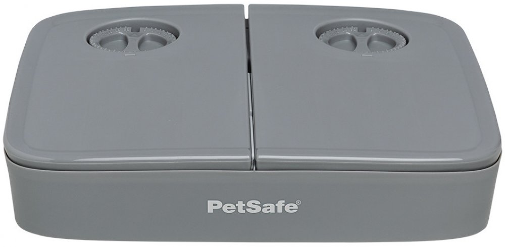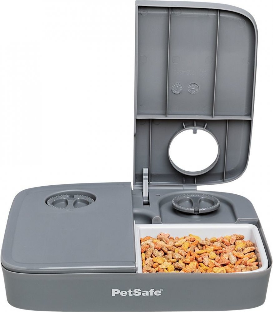 V žaludku kručí, ale páníček ani panička ještě nejsou doma? Žádnou paniku: jídla je dost! Zajistí ho PetSafe® automatický dávkovač krmiva na dvě jídla. Díky němu máte možnost nastavit dvě doby krmení na až 24 hodin dopředu, aby váš mazlíček dostal najíst v obvyklou dobu. Zařízení je zabezpečené proti domácím zvířatům, takže kočka ani pes nemohou samostatně otevřít kryt ani zařízení nijak spustit p...