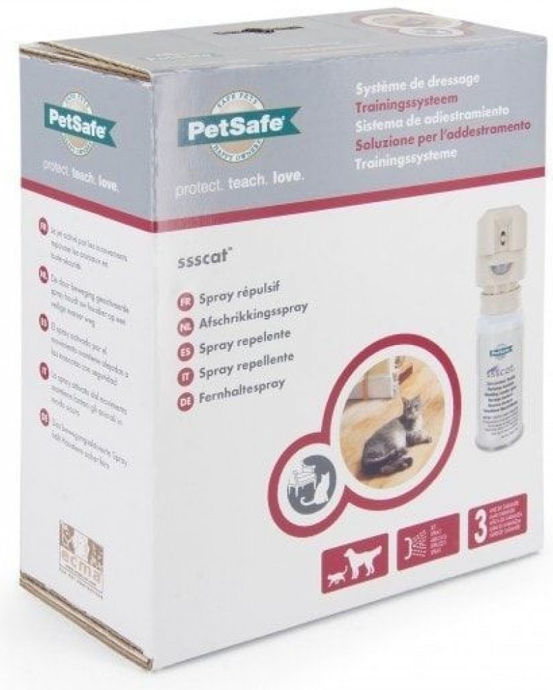 Pokud ano, máme pro vás jednoduché a velmi efektivní řešení. sssCAT je plně automatické zařízení na odpuzení kočky z místa, kde je její aktivita nevítaná. Senzor pohybu zaznamená příchod vašeho miláčka a ampule vystříkne přírodní aroma na odpuzení kočky. Balení obsahuje cca 80 - 100 dávek.