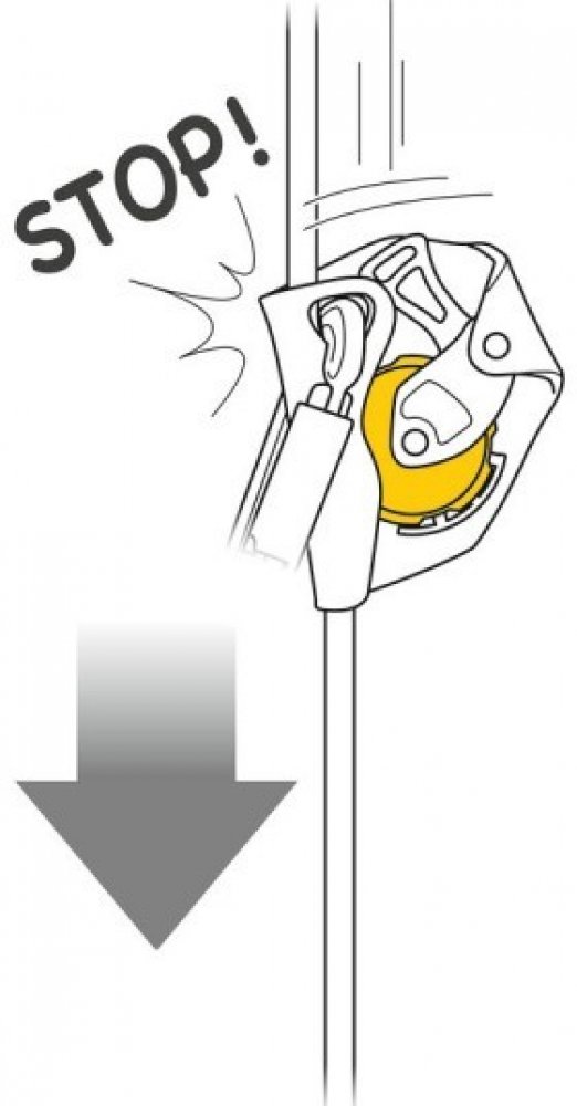 - Zablokuje se na laně i v případě reflexního uchopení rukou při pádu.