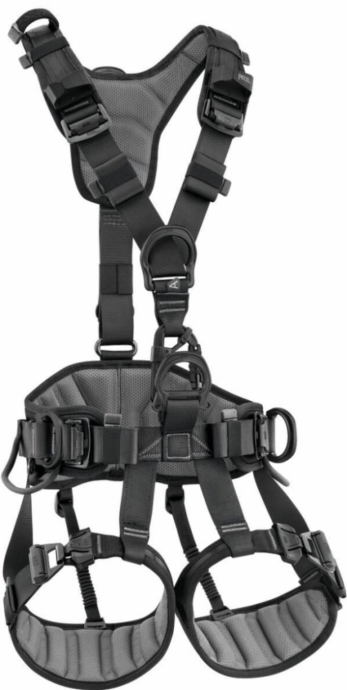 - Samosvorné přezky DOUBLEBACK v zadní části postroje, na popruzích spojujících pás a nohavičky, umožňují nastavení pro připojení do zádového připojovacího bodu