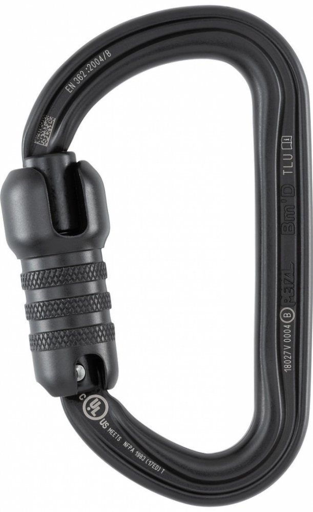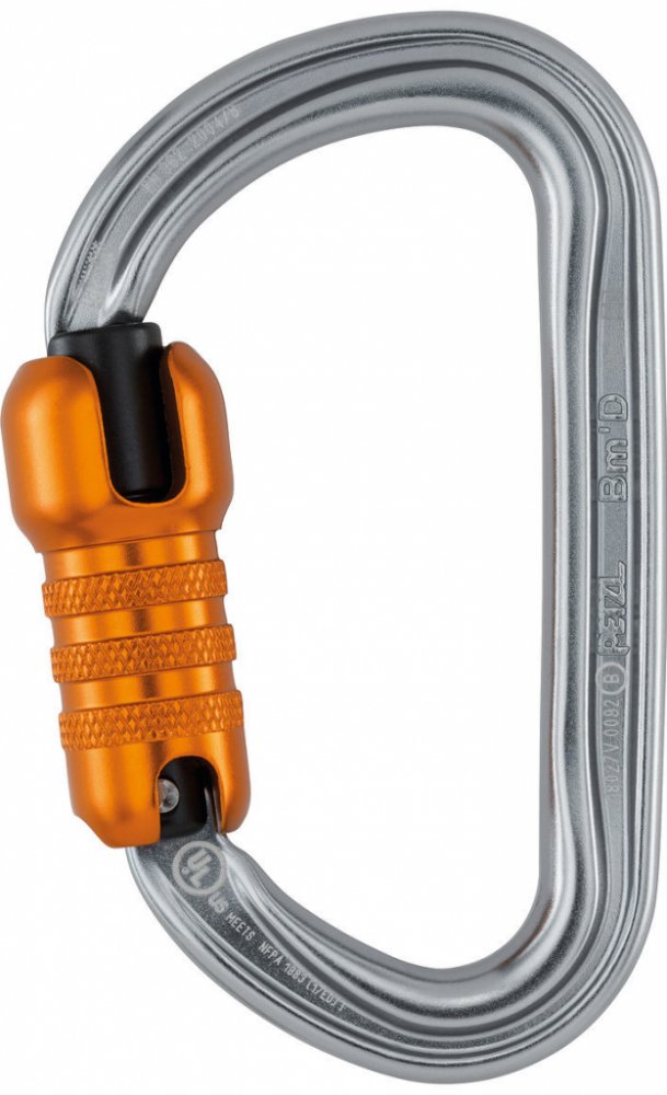 Lehká a pevná symetrická karabina Petzl Bm'D s automatickou pojistkou zámku Triact-Lock. Je vyrobena z hliníku. Její tvar ji předurčuje k připojení různého vybavení, jako např. zlaňovacích brzd nebo polohovacích prostředků. Tělo pojistky zámku je zesíleno, čímž se zvýšila boční a čelní pevnost západky, ale zároveň umožňuje snadnější manipulaci.