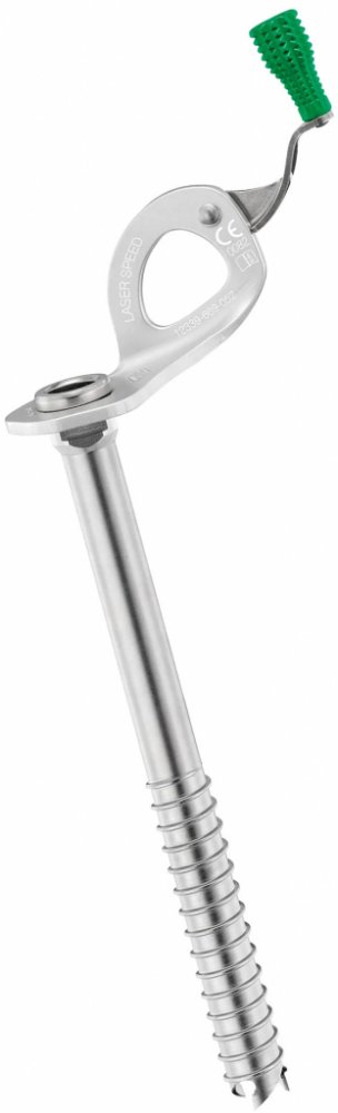 Ocelový šroub do ledu Petzl Laser Speed s velkou účinností v jakémkoli typu ledu. Plaketa sloužící jako klika se otáčí jako rukojeť a umožňuje rychlé navrtávání. Ocelový dřík je pevný a odolný. Korunka se třemi zuby zaručuje rychlé pronikání do ledu.