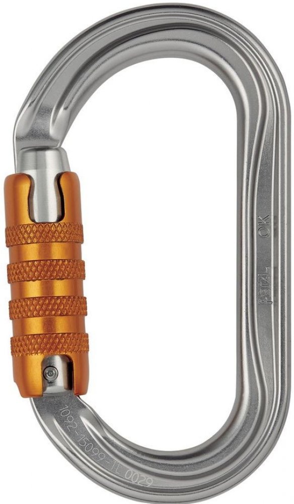 Petzl OK triact-lock: je duralová karabina oválného tvaru s automatickým třípolohovým zámkem typu triact lock. Je vhodná pro výškové práce, kde oválný tvar oceníte především. Je zajímavá tím, že se níkde nezadrhává, máte dostatek pracovního prostoru na obou koncích.Má zajímavé pevnostní hodnoty, univerzální tvar, dobrá hmotnost.
