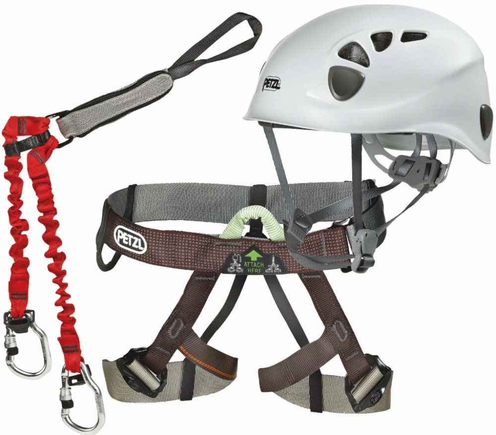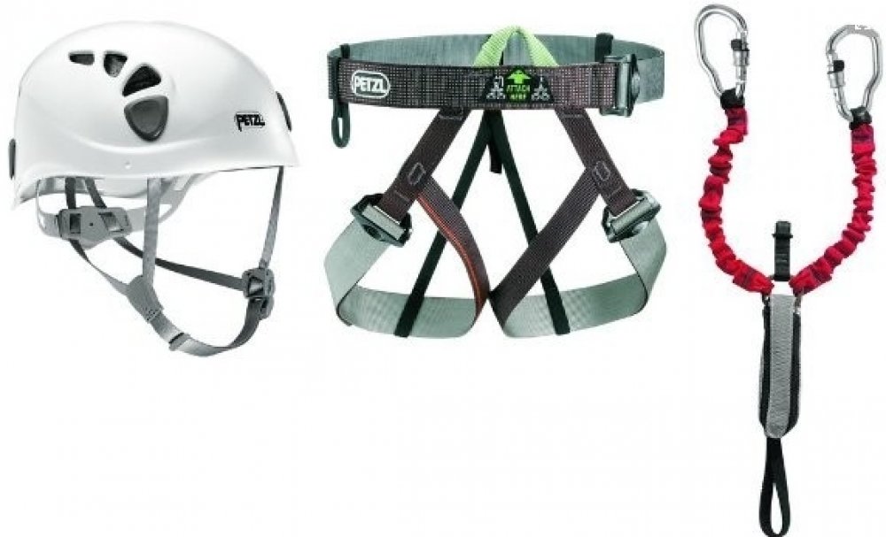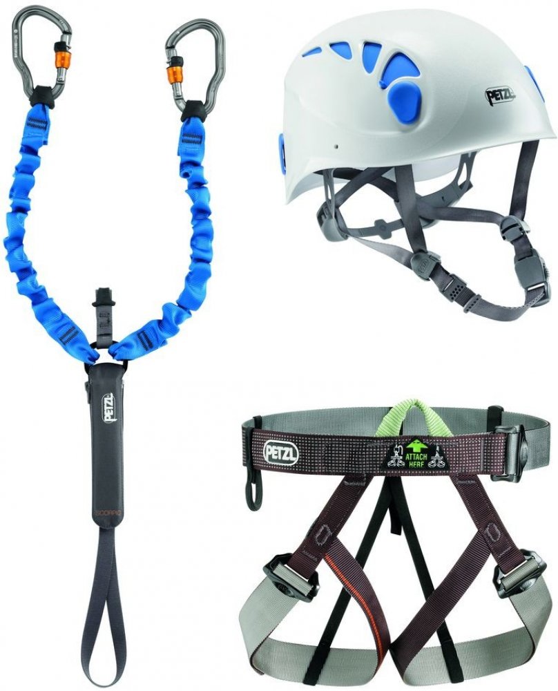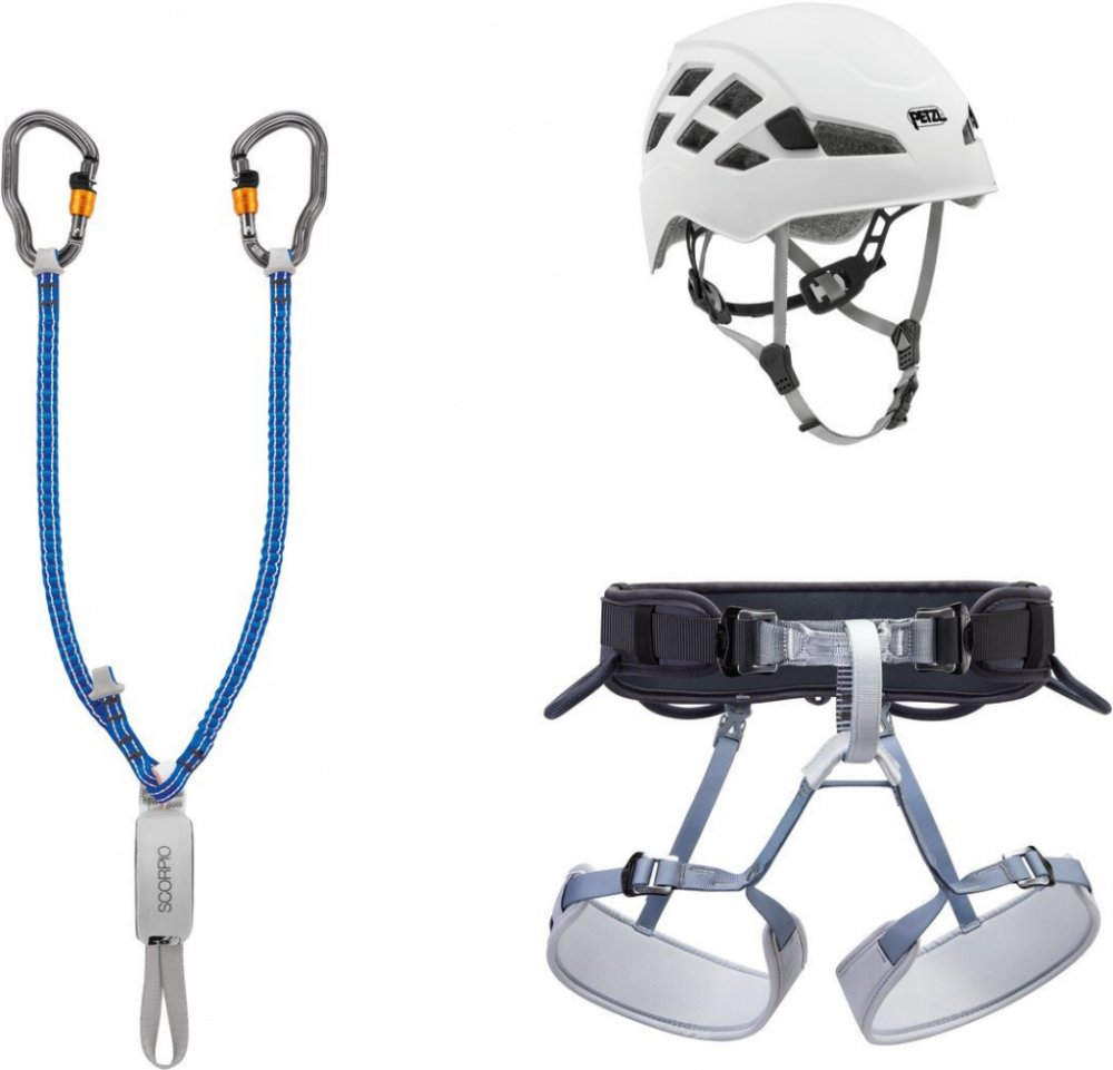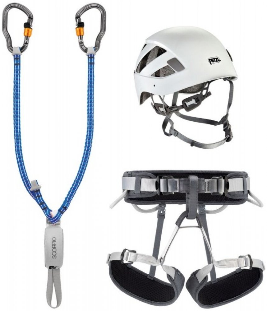 Sada se skládá z ferratového setu s karabinami SCORPIO VERTIGO, nastavitelného sedacího postroje CORAX a přilby BOREO ve velikosti M / L.