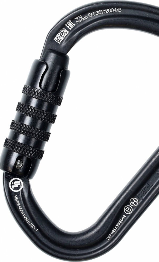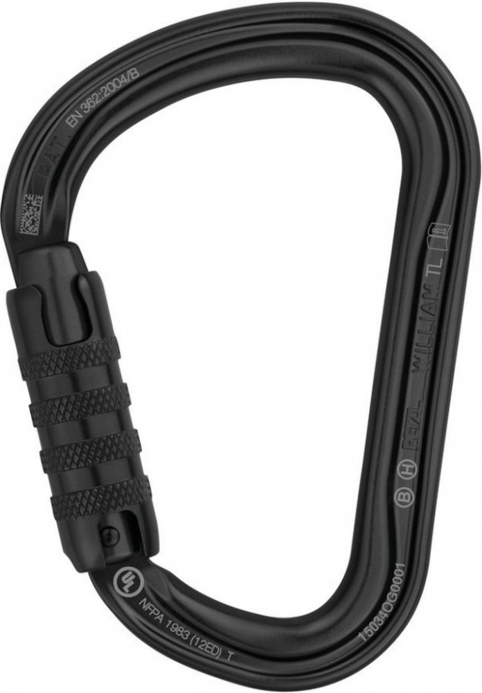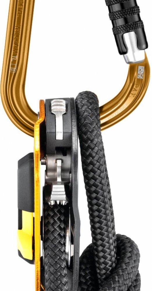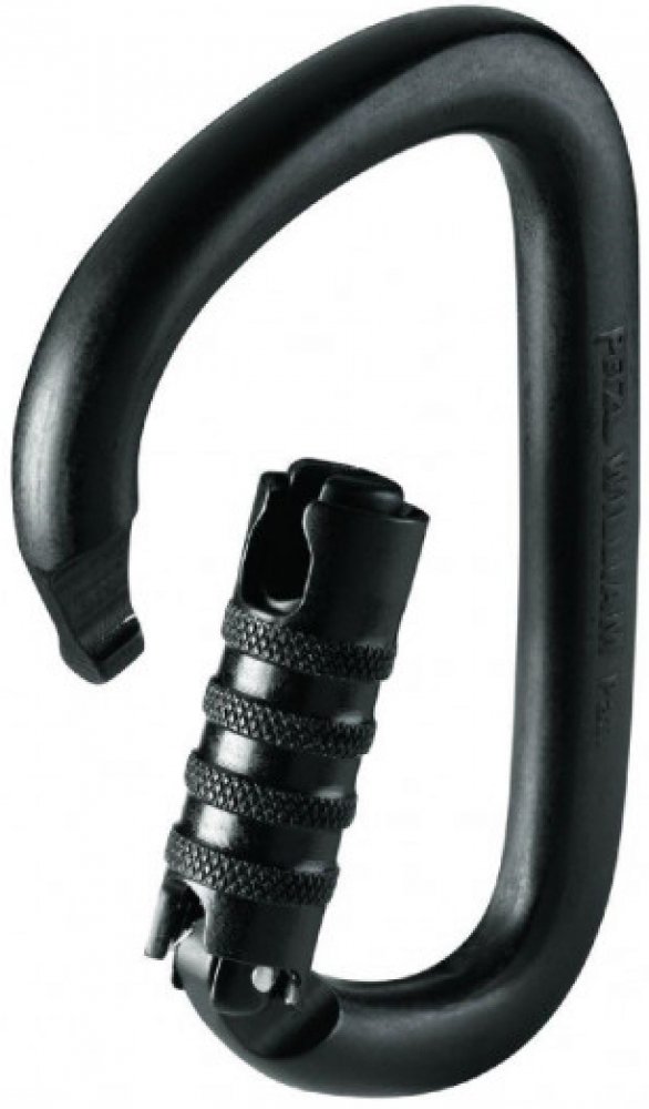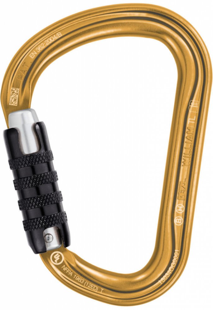 Široké otevření západky umožňuje připnout karabinu k silným nosníkům.