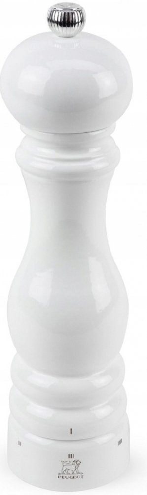 Speciální mlecí mechanismus vyvinutý pouze na mletí pepře. Mlýnek je vyroben z kvalitního bukového dřeva. Obousměrný mlecí mechanismus uSelect s nastavitelnou hrubostí mletí. Vyrobeno ve Francii. S obousměrným mlecím mechanismem uSelect s volbou nastavení hrubosti mletí. Mechanismus se skládá ze dvouřadé ozubené spirály, která perfektně vede a drží jednotlivá zrnka pepře. Ocel, ze které je mechanismus vyroben, je speciálně ošetřena patentovaným postupem proti korozi. Výsledkem je, že si mechanismus zachová svou ostrost a odolnost. Doživotní záruka na mlecí mechanismus. Mlýnky jsou rozlišeny písmenky P a S na horní části korunky. barva: bílá - lesklé provedení rozměry: výška mlýnku 22cm Mlýnky Peugeot jsou vždy plněny solí a pepřem přímo od výrobce.