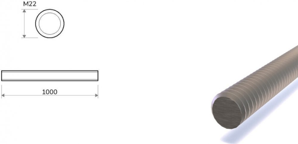 Pevnostní závitová tyč pozinkovaná M22 je dlouhá kovová tyč opatřena povrchovou úpravou zinku, která je tak odolnější vůči korozi než běžné černé pevnostní závitové tyče. Hodnota 8.8 označuje její tvrdost nebo také pevnost. Tyč je galvanicky zinkovaná. Dodávána ve výrobní délce 1 m průměrem 22 mm s hmotností 2,6 kg jakosti DIN 976.