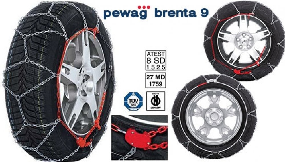 Pewag Brenta 9 XMB67 - sněhové řetězy s tvrzenými články legovanými manganem od světoznámé firmy Pewag. Články mají 9mm jsou čtyřhranné proti protáčení řetězu a tím se zvyšuje jejich záběr. Sněhový řetěz Pewag Brenta 9 používá šikmostopovou řetězovou síť z nízkých a odolných článků a proto je možné použití i pro vozidla s malým prostorem v podbězích. Zároveň řetězová síť u sněhových řetězů Pewag B...