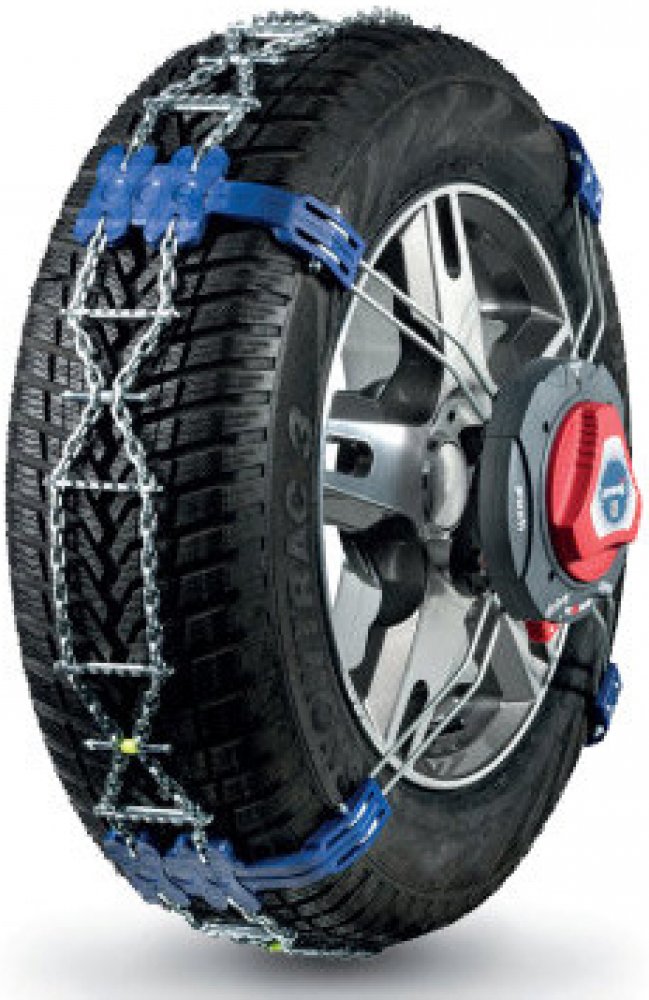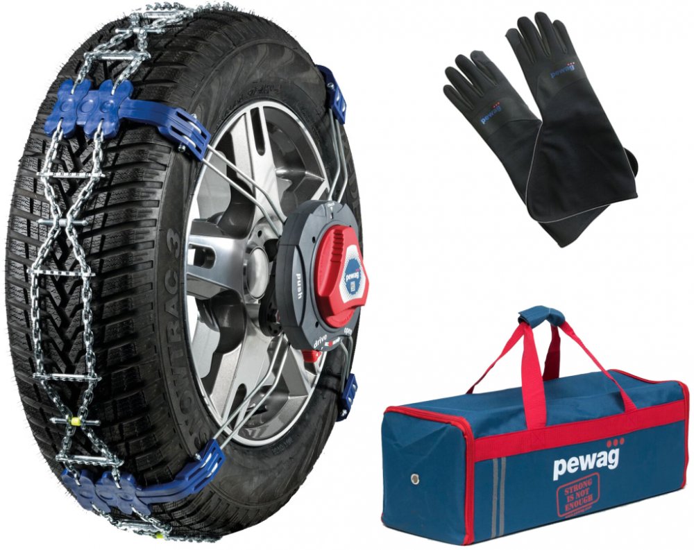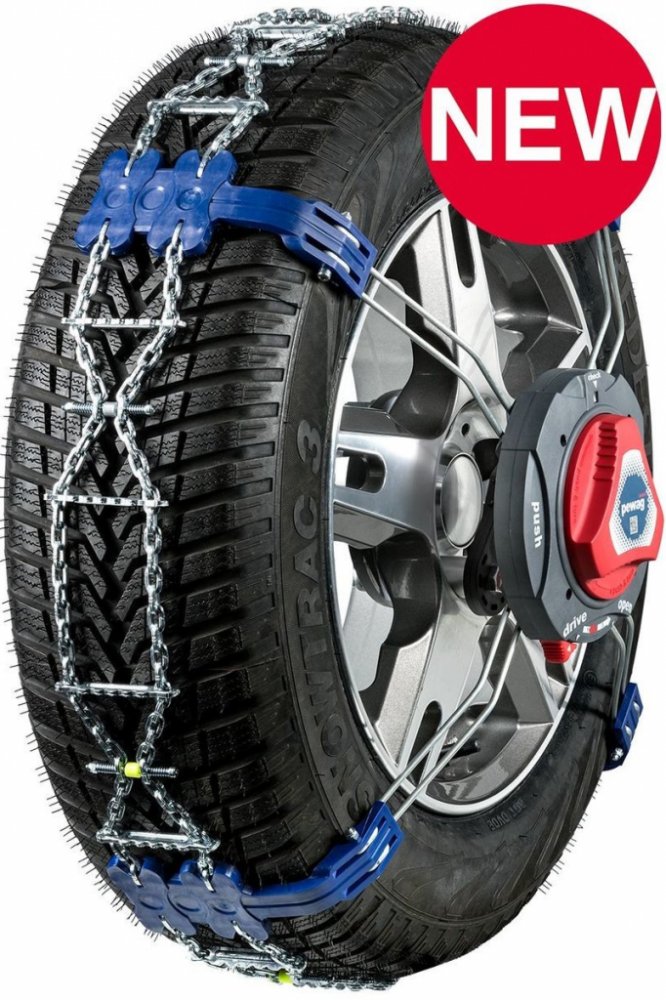 Inovativní pewag nasazovací systém s automatickou servo ráčnou. Řešení pro vozidla kde není dostatek prostoru pro standardní sněhové řetězy.