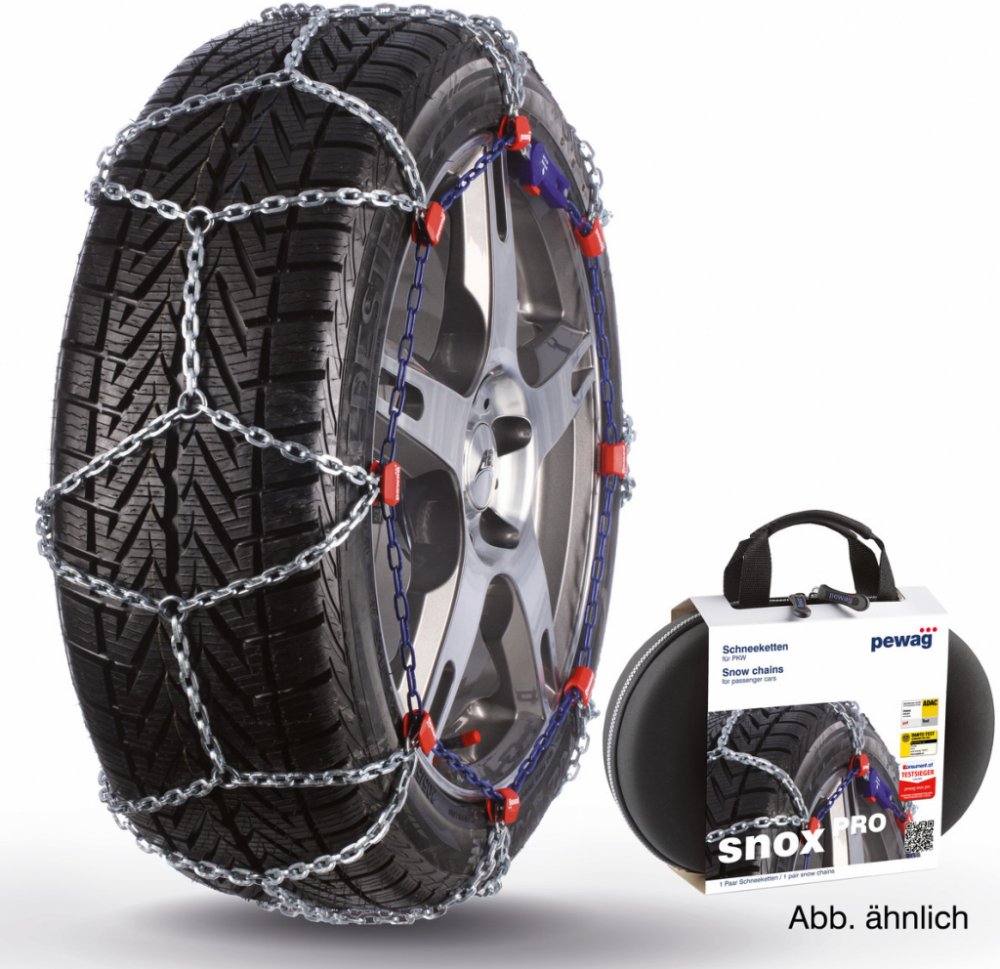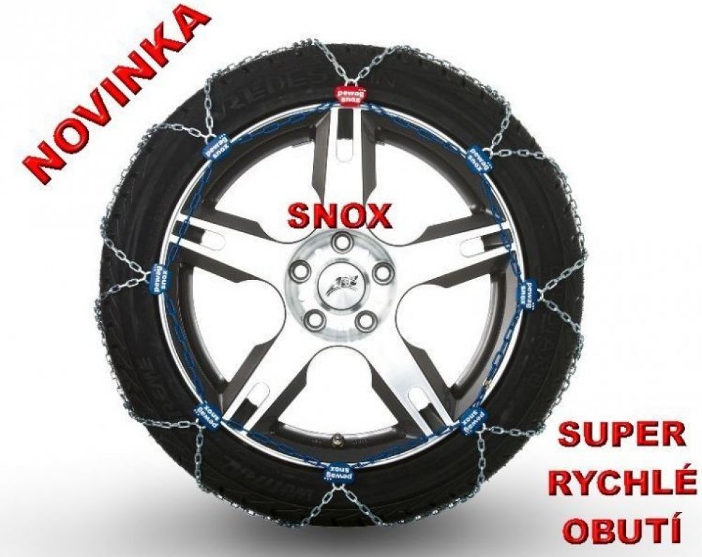 Řešením je revoluční technologie mechanismu snox box, který je na řetězu. Snox box zaručuje plně automatické napínání řetězu. Během jízdy systém uzamkne vratnou pružinou. Jakmile vozidlo zastaví, systém vratnou pružinu opět odemkne a řetězy lze lehce stáhnout z pneumatiky.