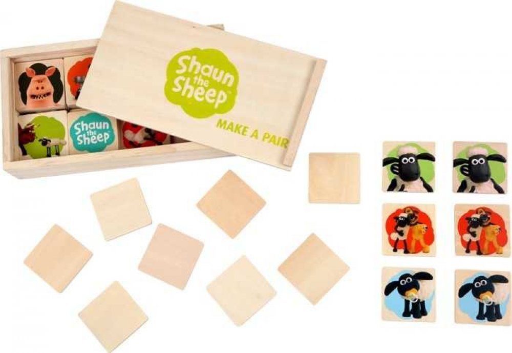 Ovečka Shaun, známá z filmu a televize, nadchne nejen dětí svým uličnickým a zvědavým zjevem. Zde zdobí motivy ovečky a jejich přátel pexeso. Dřevěný box obsahuje 32 dřevěných karet se zaoblenými hranami a s obrázky animovaných hvězd série. Úkolem je najít správné dvojice. Hra mimochodem podporuje paměť a koncentraci.