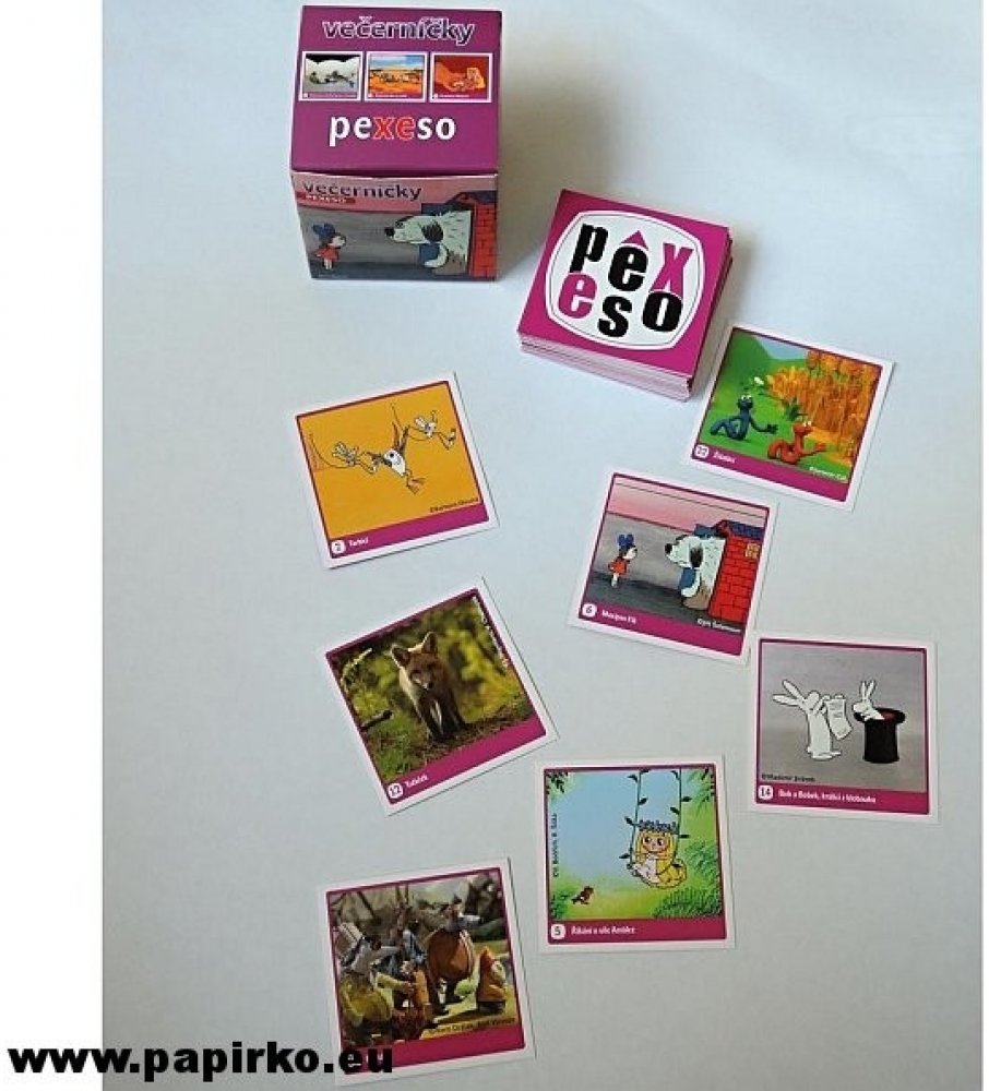 PEXESO je populární dětská stolní hra, která nikdy neomrzí a zapojit se můžou i dospělí. Věděli jste, že slovo PEXESO vzniklo souslovím slov PEKELNĚ SE SOUSTŘEĎ? Výborná učební pomůcka pro děti a rodiče. Naučte své děti poznávat nová slova a procvičujte jejich paměť. Tato hra je zabaví na dlouhé hodiny.