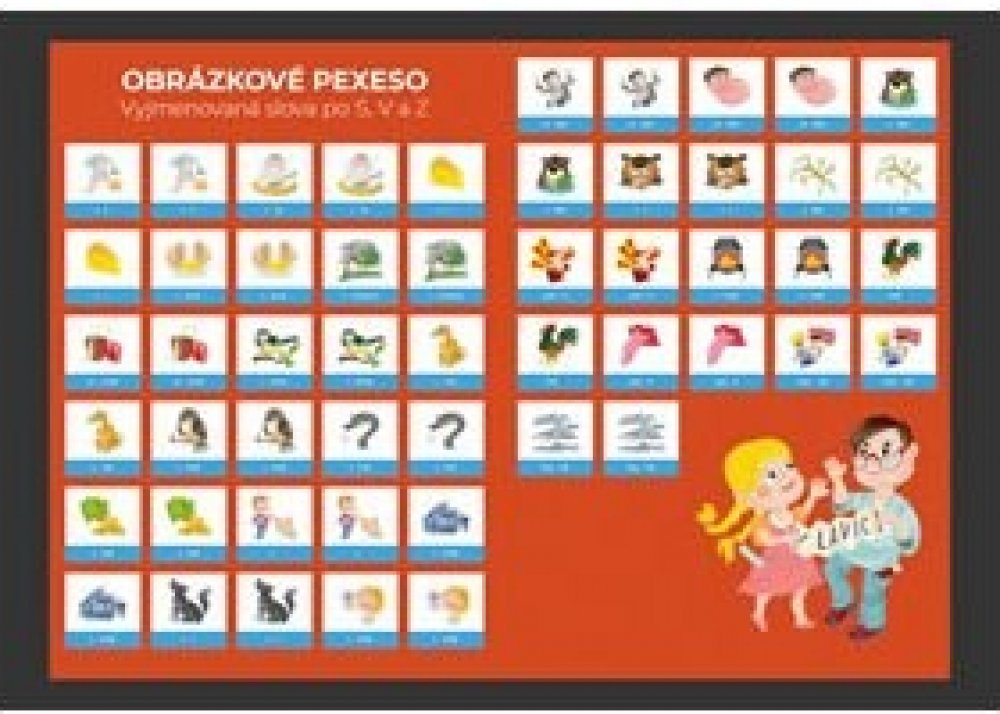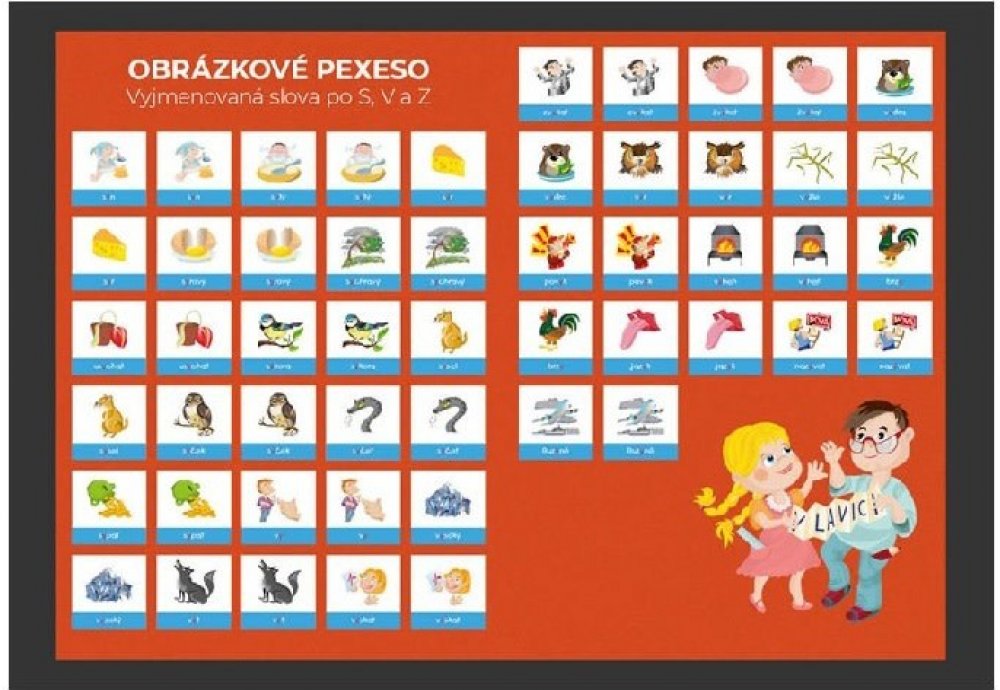 Pexeso - vyjmenovaná slova po S, V a Z*52 kartiček*pro žáky 3. - 5. tříd Pexeso - vyjmenovaná slova po S, V a Z, slouží jako dobrý pomocník pro žáky 3. - 5. tříd, kteří se učí a opakují si vyjmenovaná slova. Celke 52 kartiček umožní vašim dětem zábavnou formou vylepšit znalosti vyjmenovaných slov.