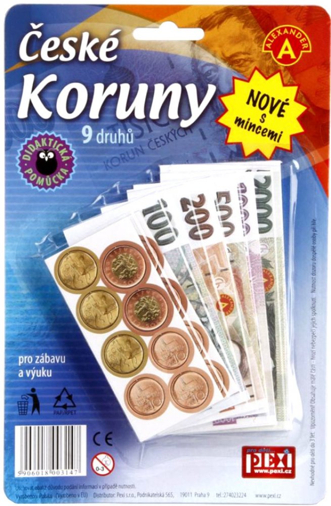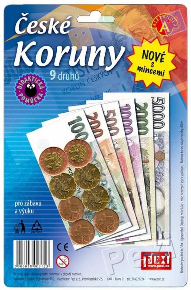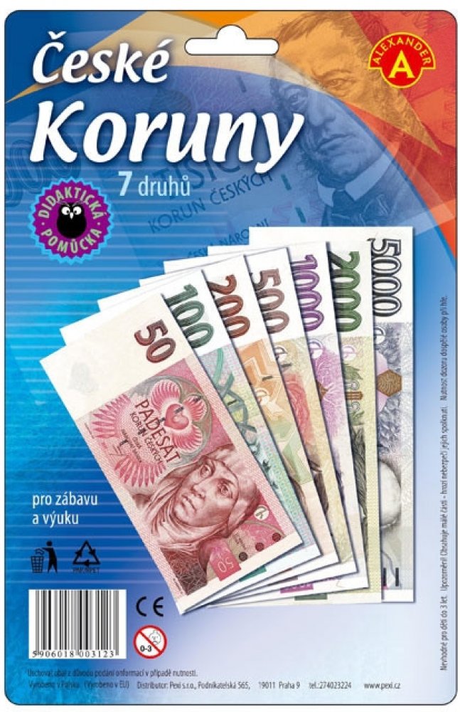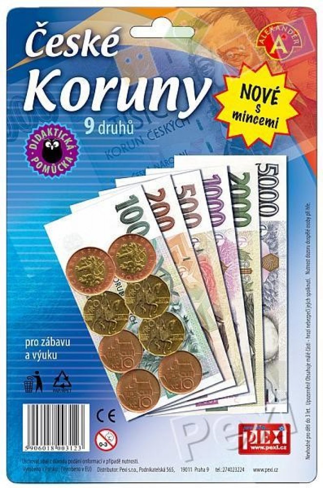 15450,v jednom balíčku! 119 velkých sytě barevných bankovek z EU. Vhodné k různým dětským hrám a jako naučná pomůcka. Seznam se s penězi, kterými se platí v evropskýh státech. Buď připraven až tato měna dorazí i do České republiky. Balení obsahuje: 119 bankovek (7 druhů) Firma Alexander vyrábí široký sortiment společenských her pro děti i dospělé a má více než 30-ti leté zkušenosti s jejich vývoje...