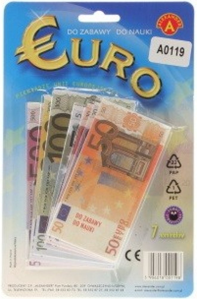 Seznam se s penězi, kterými se platí v jiných evropskýh státech i na Slovensku. Až vyrazíš za hranice budeš už znát cizí měnu a budeš se cítit jako doma! 119 velkých sytě barevných bankovek z EU. 15045,-Euro v jednom balíčku! (tj. cca 400.000,-Kč). Vhodné k různým dětským hrám a jako naučná pomůcka.