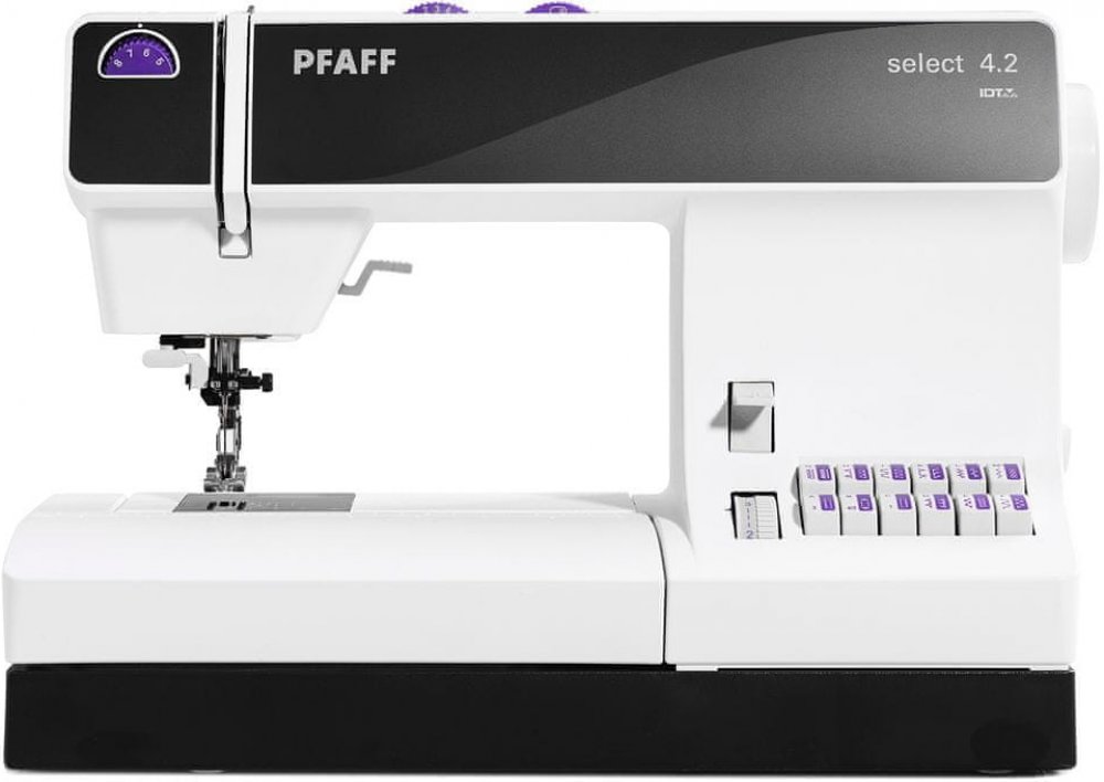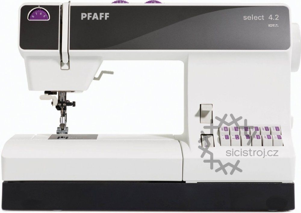 Šicí stroj Pfaff Select 4.2 je domácí šicí stroj s praktickými funkcemi a moderním vzhledem. Jedná se o modernější verzi šicího stroje Pfaff Select 4.0. Šicí stroj Pfaff Select 4.2 má modernější design, zcela nový, přichází s větší škálou programů pro šití a s LED osvětlením pro krásnější osvětlení pracovní plochy. Šicí stroj Pfaff Select 4.2 má jednoduché ovládání, volné rameno, 40 stehů, extra ozdobné stehy, systém EasySelect pro snadnou volbu stehu, systém horního podávání IDT, regulaci délky a šířky stehu, zpětný chod, ořez nitě, navlékání nitě na spodní cívku s automatickým vypnutím při naplnění cívky, a další funkce. Šicí stroj má rovněž bohaté příslušenství včetně látací patky a patky pro rolovaný lem.